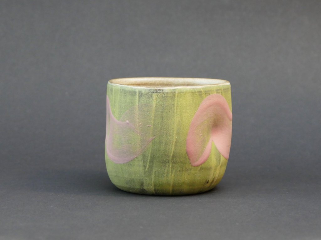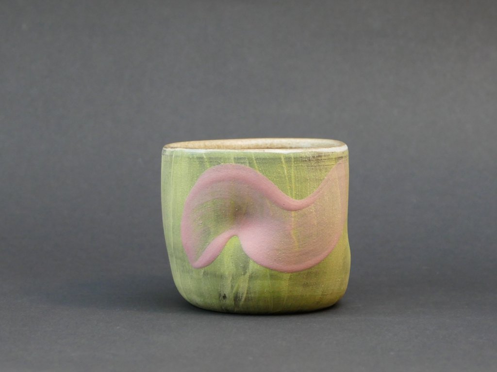 Pohárek si užijete celý den na všechny Vaše oblíbené nápoje. Díky jeho objemu je všestranný. Povrch kryje engobová vrstva, zevnitř pak glazovaný krémovou glazurou. Po ostrém výpalu povrch leštím jemným smirkem pro příjemný dotek. Zároveň však nechávám přirozenou strukturu keramiky.