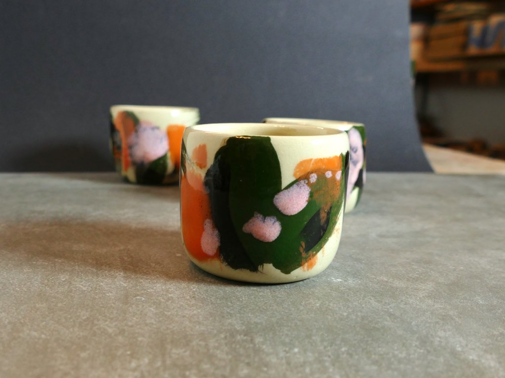 Pohárky jsou pálené na 1220°C a jsou celoglazované.